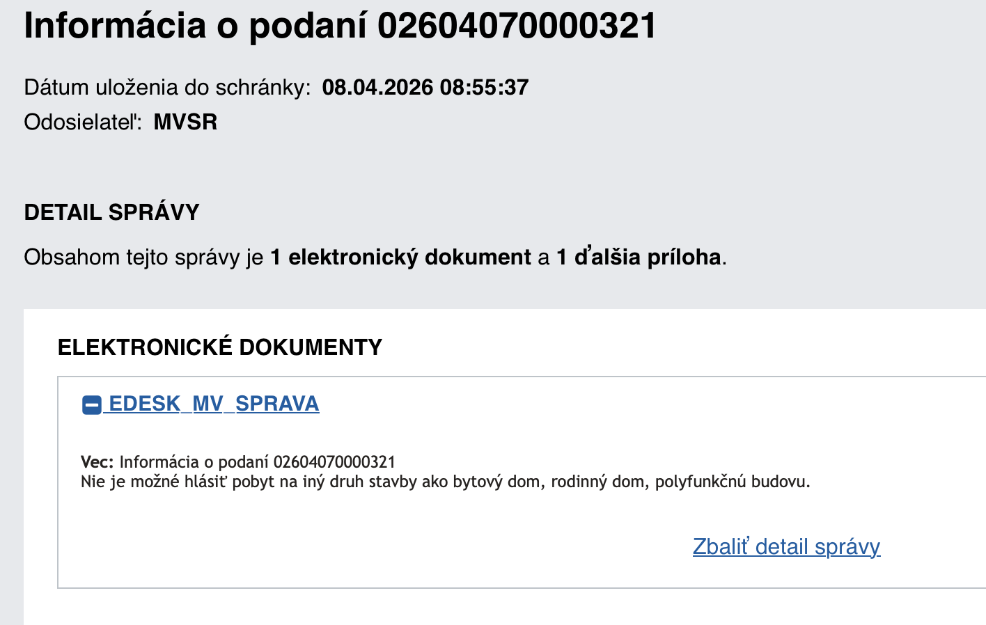 No nič, podľa Centrálnej ohlasovne asi bývam v chlievi alebo maštali. Ale definitívne nie v rodinnom dome, bytovom dome alebo polyfunkčnej budove…
