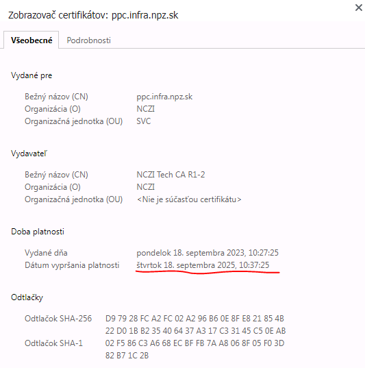 For The Record: Dnes, 20.9.2025 je tam stale ten isty vyprsany certifikat.