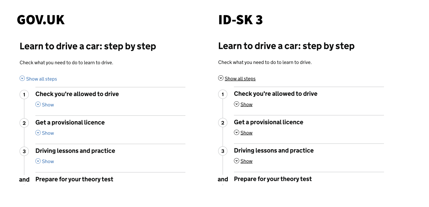 Na prikladoch, ktore si poslal mozes sam posudit ako “velmi” sa lisi ID-SK 3 od Gov.uk. Ukazky, ktore som tu dal nie su dizajny! Upravil som ich priamo na strankach gov.uk pomocou inspektora!