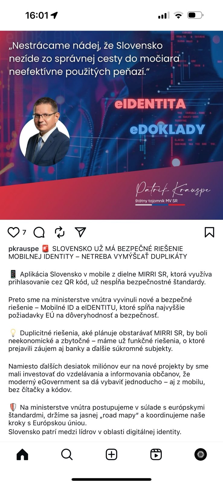 Štátny tajomník ministerstva vnútra Patrik Krauspe hodnotí, že návrhy MIRRI sú v rozpore s princípmi kybernetickej bezpečnosti. V čom konkrétne, nešpecifikuje.