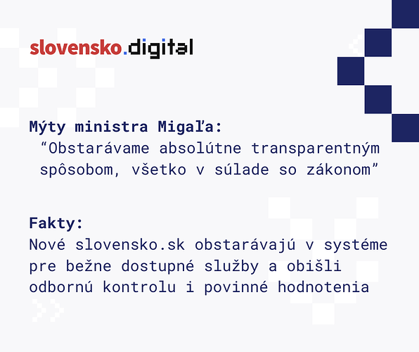 "Minister Samuel Migaľ na svojej tlačovej konferencii veľmi otvorene a podrobne vysvetlil všetky detaily týkajúce sa projektu nového portálu slovensko.sk vrátane postupu obstarávania aj finančných súvislostí. Odpovedal na všetky otázky novinárov a jasne vyvrátil pochybnosti, ktoré sa v posledných dňoch objavili vo verejnom priestore. Tí, ktorí problematike skutočne rozumejú, pochopili, že ide o potrebný a dlhodobo udržateľný projekt, ktorý má zásadný význam pre modernizáciu služieb štátu,“ zdôraznilo ministerstvo investícií
