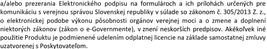 (V bode 3.1.b sa dosť zmätočne uvádza, že používateľ sa zaväzuje “Produkt používať výlučne za účelom vytvárania Elektronického podpisu”, ale beriem to ako chybu a budem sa držať pre mňa výhodnejšieho bodu 2.4. Hm, je to však čudný chaos.)