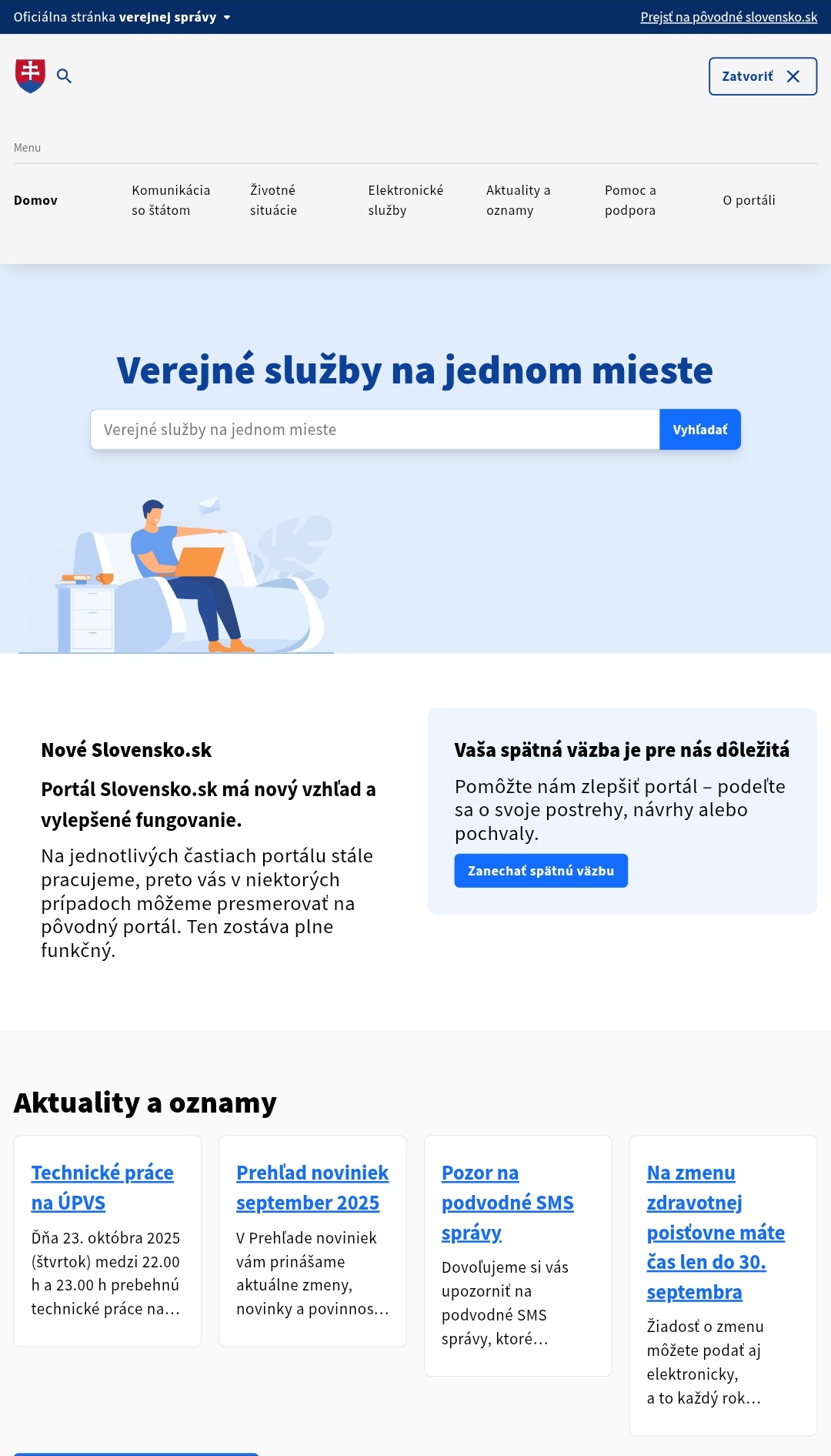 Oznámenie (obsahuje aj formulár pre feedback) - Nové Slovensko.sk – beta verzia ústredného portálu verejnej správy